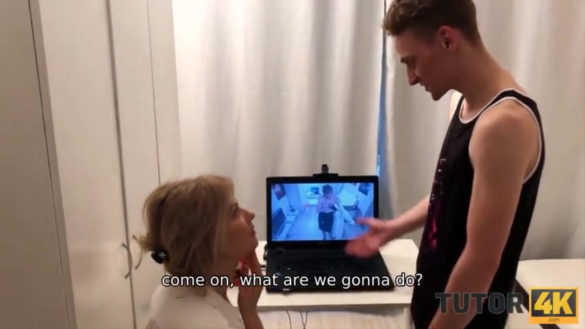 Молодой студент снял на вебку полуобнажённую учительницу, которая пришла позаниматься с ним и чтоб он не отправил это видимо её студентам, взамен он шантажом заставил бабенку сосать его член. Что самое интересное, он так и не выключил камеру и оттрахав свою любимую препадшу в гладко выбритую пилотку, в финале развлечения, накончал ей в рот.